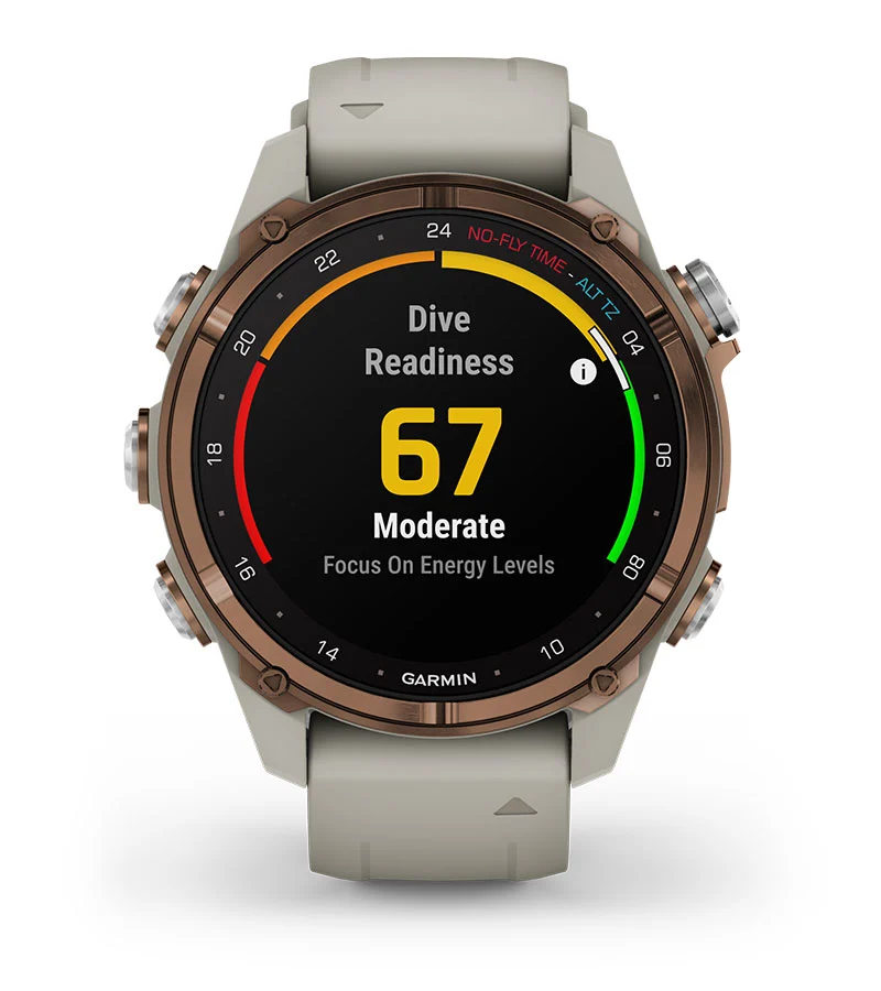 Передовая технология Garmin показывает, как факторы образа жизни, такие как сон, физические упражнения, стресс и смена часовых поясов, могут влиять на ваш организм, позволяя оценить вашу готовность к погружению.