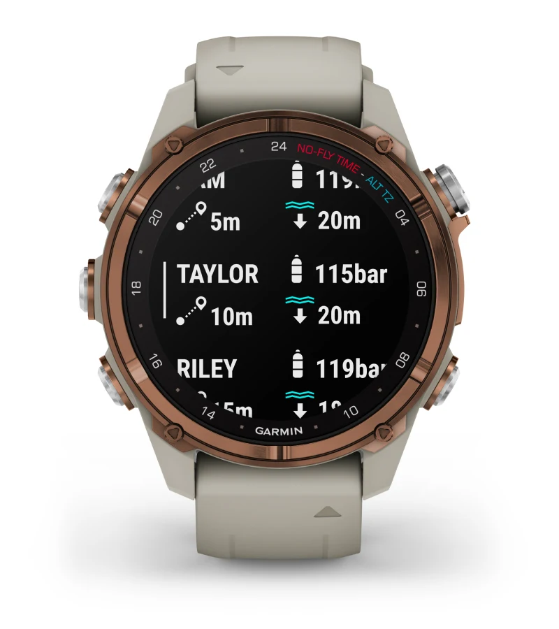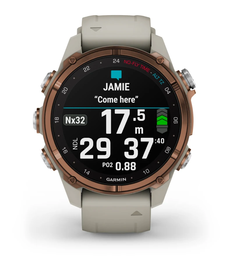 Этот усовершенствованный дайв-компьютер и часы оснащены функциями интеграции с системой подачи воздуха, а также функцией связи с сонаром SubWave™ и мониторинга дайвера, которые помогут вам извлечь максимум пользы из каждого погружения. Кроме того, в них предусмотрены функции мультиспортивных тренировок и интеллектуальные функции для повседневной жизни.