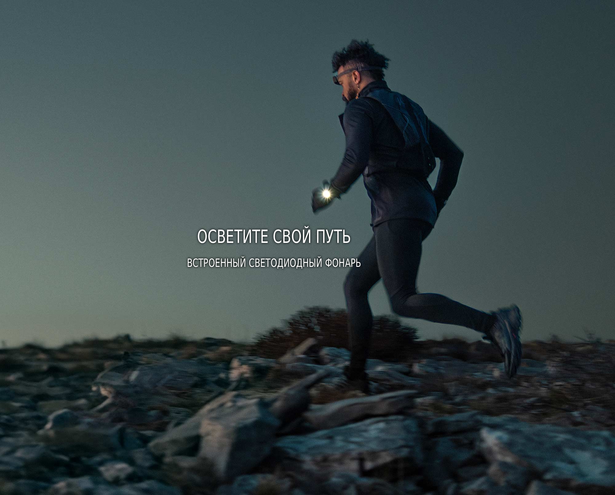 Встроенный фонарик с регулируемой яркостью и красным сигналом безопасности обеспечит вам повышенную бдительность в темноте, обеспечивая удобное освещение в нужный момент. Режим стробоскопа можно даже настроить под ваш темп бега.