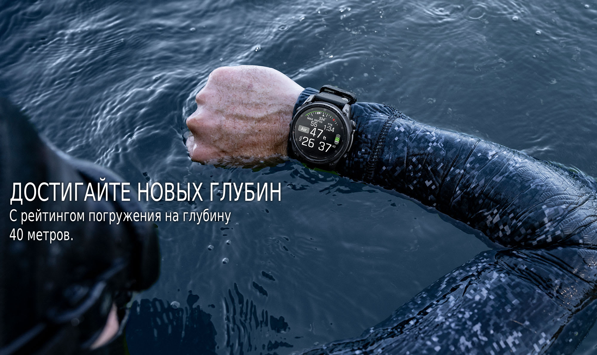 С рейтингом погружения на 40 метров вы готовы погружаться на большую глубину, чем когда-либо, и сможете заниматься подводным плаванием и подводным плаванием с задержкой дыхания.