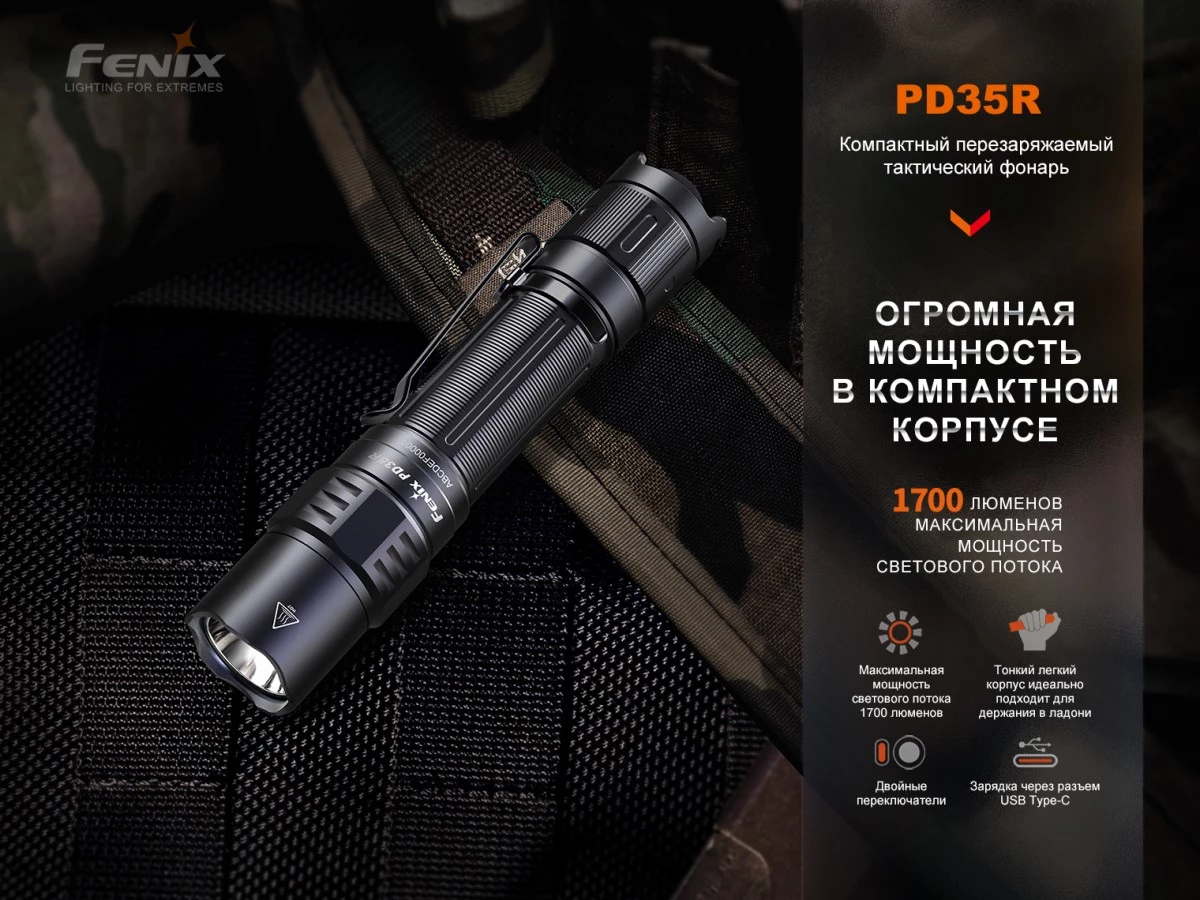 Описание фонаря Fenix PD35R EDC/Tactical, 1700 Lumen: