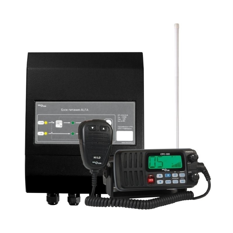 Комплект из УКВ радиостанции NavCom СРC-300, блока питания NavCom Alfa-4 и антенны NavCom АШС-1500Р.
